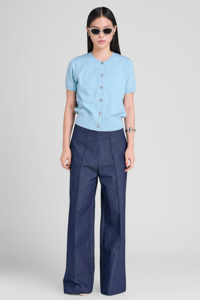 Wash it separately from other fabrics, the wool can get transferred to other clothes.