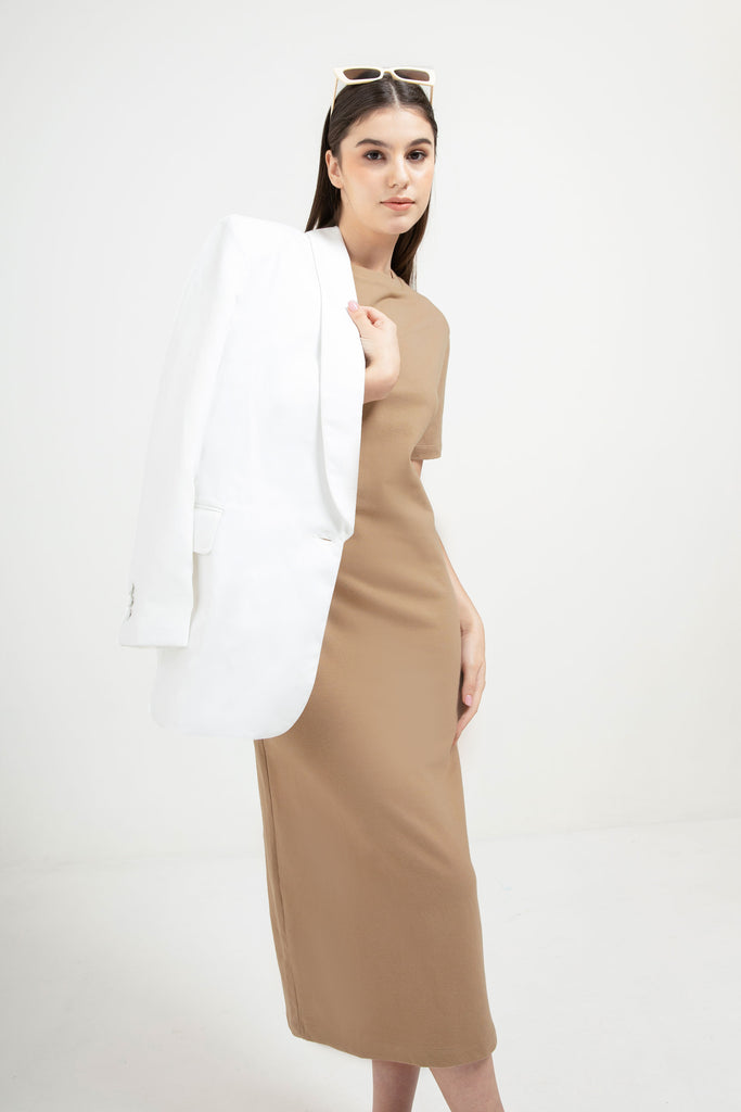 BRION OFF-SHOULDER DRESS ESPRESSO