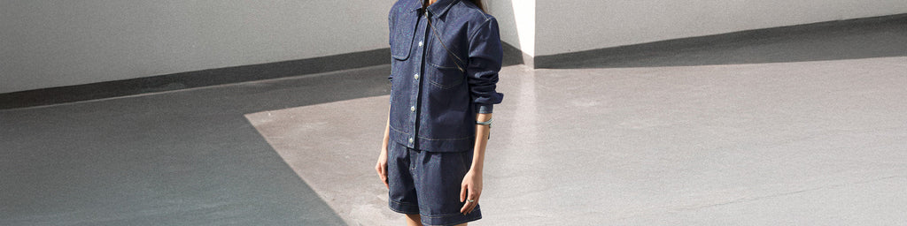 HAGIA DENIM ZIPPER TOP DARK BLUE