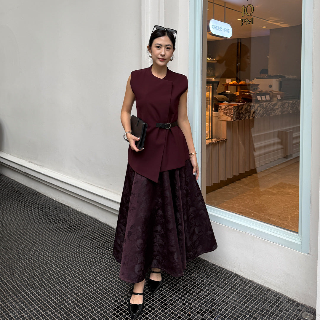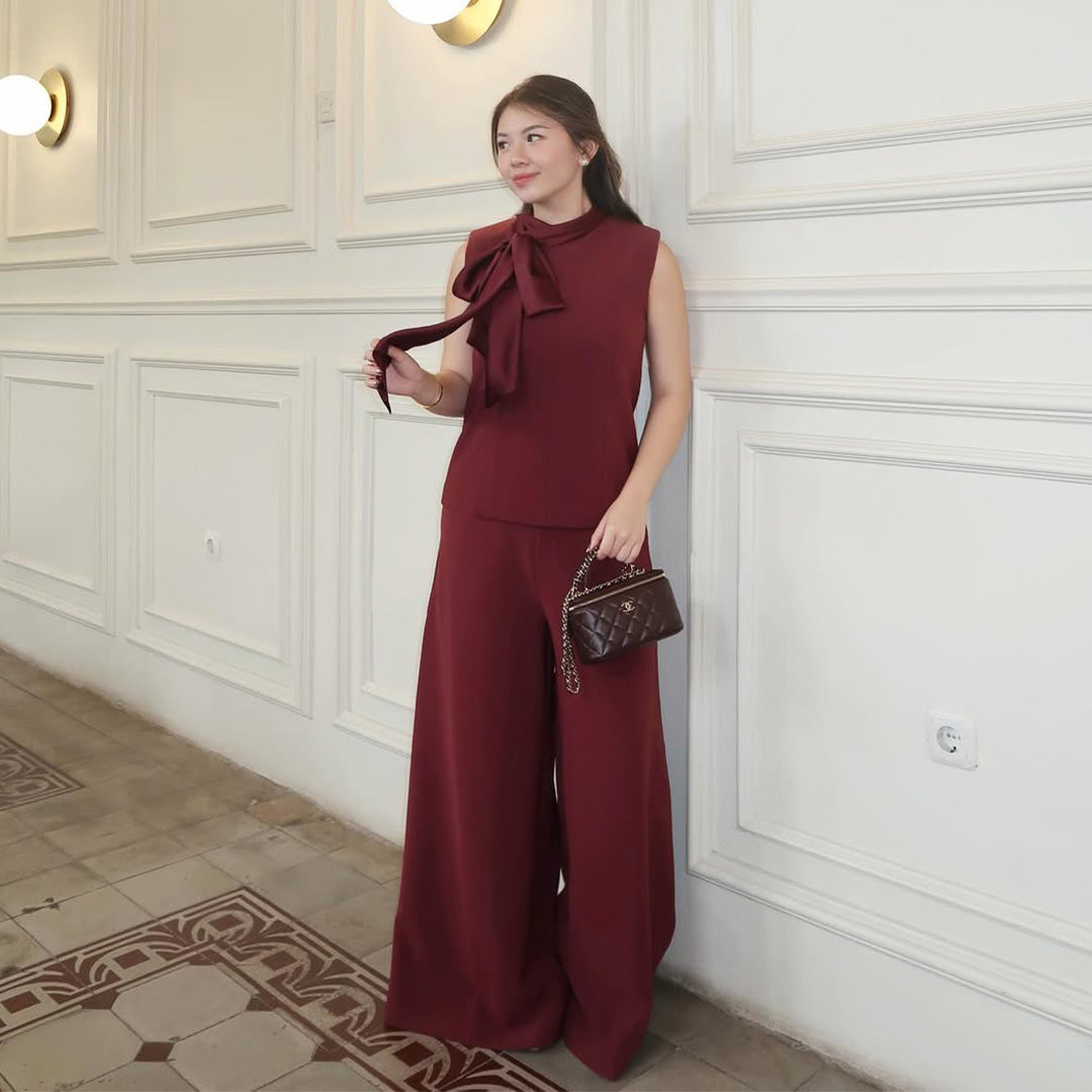 LUNOR WIDE-LEG PANTS BURGUNDY