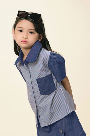 A little stripe, a little denim, a whole lot of fun! The Rei Striped Shirt mixes patterns for a cool, standout look. Comfy enough for everyday wear, but stylish enough for picture day — your little one will love it! Notes : wash separately for long-lasting wear.